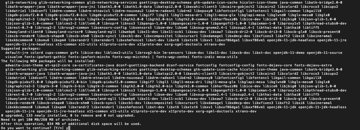When everything is updated you want to install the Java packages. You do that by running the following command. (It will take some time, a lot of things are going to be installed.)